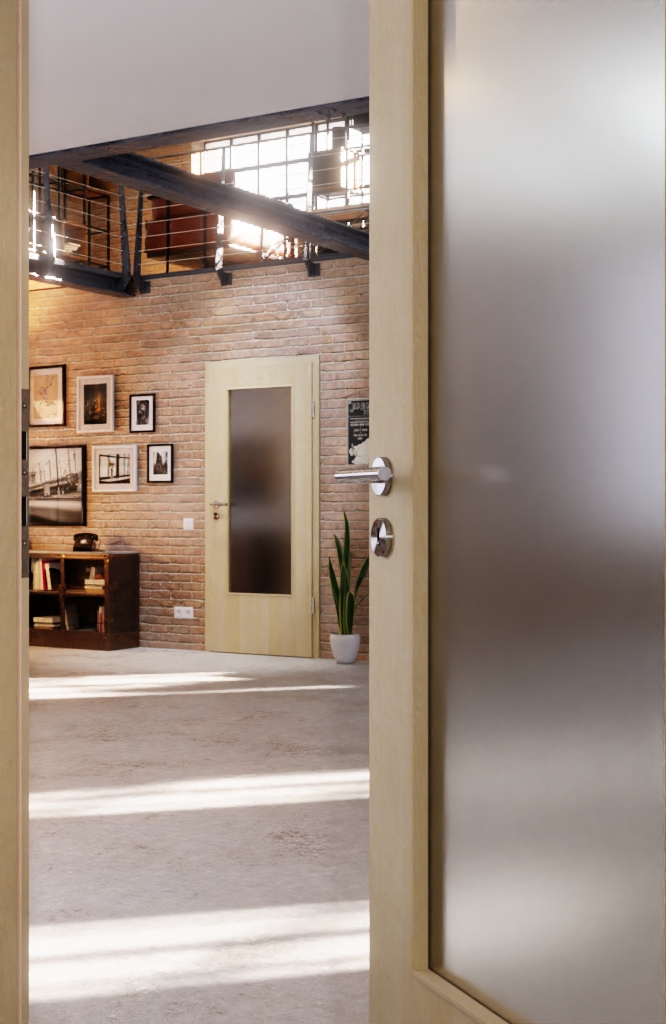 Otwór świetlny tych drzwi zapewnia wrażenie otwartej przestrzeni mieszkalnej . Do wyboru klasyczne szkło przezroczyste lub inna modna odmiana szkła. Stabilność zapewnia ramiak z twardego drewna, umieszczony wewnątrz skrzydła.