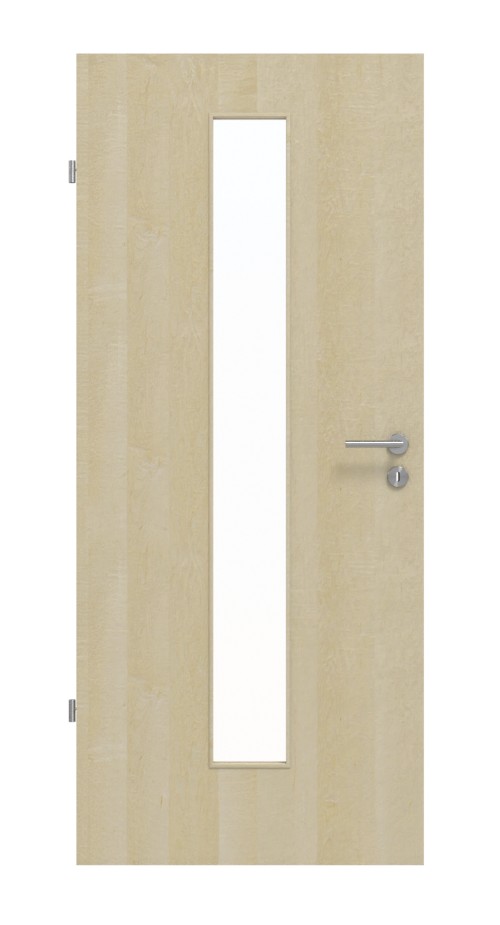 Stabilne drzwi drewniane z wycięciem na szybę; wytrzymała okleina z forniru w kolorze klonu kanadyjskiego Drzwi wewnętrzne Optima firmy Jeld-Wen z otworem świetlnym charakteryzują się naturalnym wyglądem.