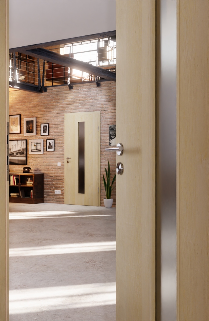 Cechą szczególną drzwi jest przeszklenie, które zapewnia wrażenie otwartego wnętrza. W zakresie szkła istnieje możliwość wyboru między klasycznymi rozwiązaniami, takimi jak szkło przezroczyste, a nowoczesnymi wariantami szkła. Wewnątrz znajduje się ramiak z twardego drewna, który zapewnia niezbędną stabilność.