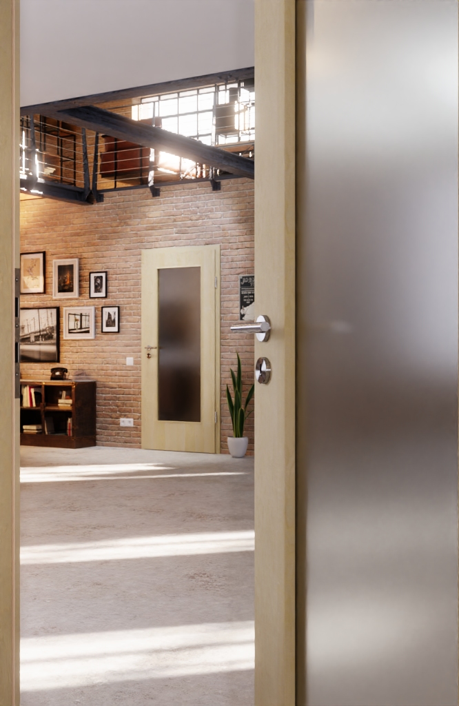 Otwór świetlny tych drzwi zapewnia wrażenie otwartej przestrzeni mieszkalnej . Do wyboru klasyczne szkło przezroczyste lub inna modna odmiana szkła. Stabilność zapewnia ramiak z twardego drewna, umieszczony wewnątrz skrzydła.
