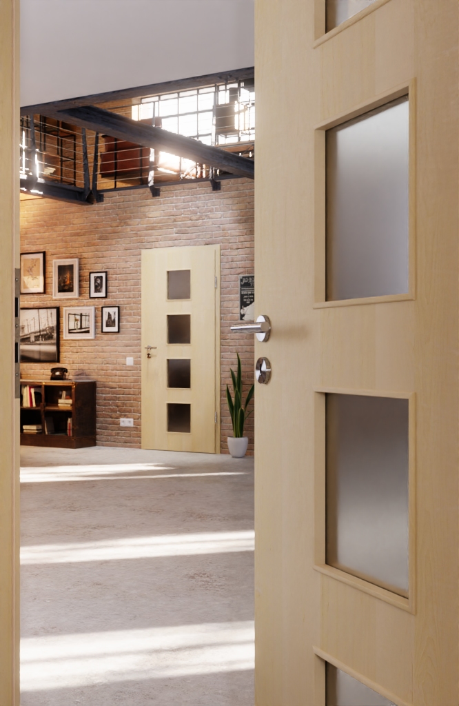 Szczególną uwagę przykuwa otwór świetlny w drzwiach. Dzięki niemu pomieszczenie wydaje się optycznie większe. Oprócz nowoczesnych rodzajów szkła, takich jak Mastercarree lub satynowane, dostępne są również klasyczne – takie jak szkło przezroczyste. Niezbędną wytrzymałość zapewnia rama z twardego drewna.