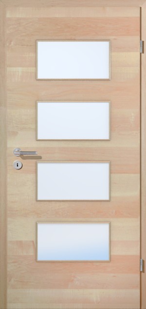 Cechą szczególną drzwi jest przeszklenie, które zapewnia wrażenie otwartego wnętrza. W zakresie szkła istnieje możliwość wyboru między klasycznymi rozwiązaniami, takimi jak szkło przezroczyste, a nowoczesnymi wariantami szkła. Wewnątrz znajduje się ramiak z twardego drewna, który zapewnia niezbędną stabilność.