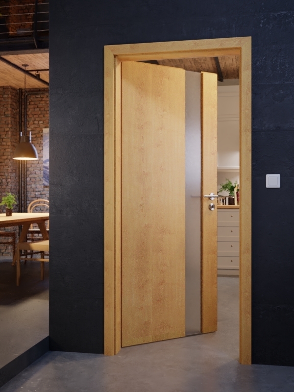 Po stronie zamka znajduje się wąski pas świetlny. Dzięki rozciągnięciu na całe drzwi wypełnia Twoje pomieszczenie jasnością.