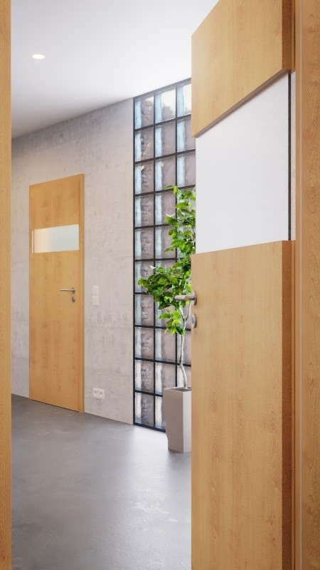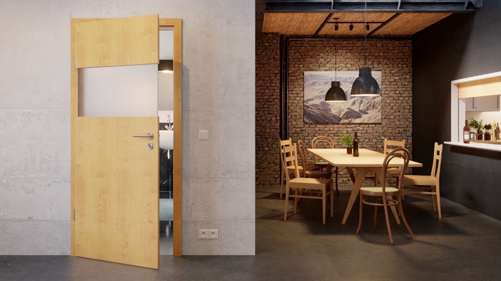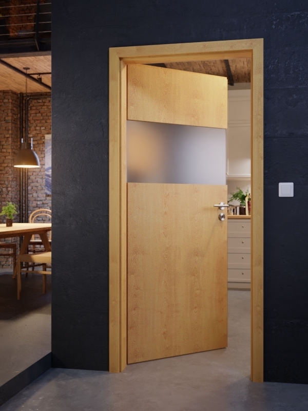 W górnej części drzwi znajduje się szeroki, poziomy pas świetlny. Dzięki temu do Twojego pomieszczenia wpada światło, a Ty zyskujesz subtelny wgląd w przestrzeń, gdy stoisz bezpośrednio przed drzwiami.