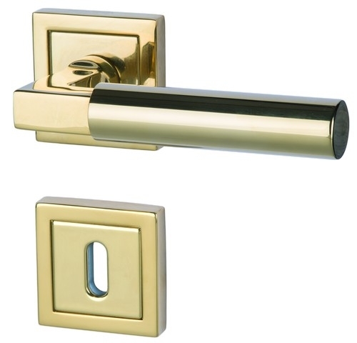 Polerowane złote powierzchnie zostały starannie przetworzone, co czyni je niezwykle odpornymi na zużycie. Kwadratowe rozetki, kanciasty przycisk i cylindryczny uchwyt tworzą harmonijną całość. Wbudowana sprężyna powrotna niezawodnie przywraca klamkę do poziomej pozycji.