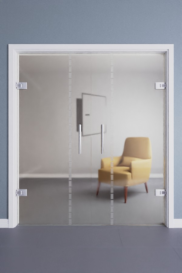 Dwuskrzydłowe drzwi szklane z pomysłowym dekorem w prostokąty