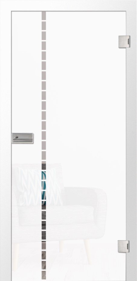 Dzięki satynowemu wykończeniu drzwi przeszklone Algo zapewniają prywatność w pomieszczeniach. Powierzchnię drzwi zdobią małe, rozmieszczone pionowo prostokąty . Motyw tworzy w ten sposób przepuszczającą światło szczelinę i przyczynia się do harmonijnego rozkładu światła.