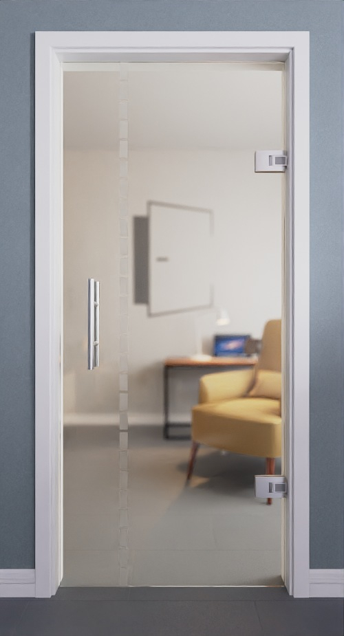 Drzwi całoszklane zapewniają otwarte i jasne wnętrza. Przerywana linia prostokątów nadaje szklanej powierzchni indywidualny charakter. Dzięki przejrzystej stylistyce drzwi wahadłowe pasują do każdego nowoczesnego pomieszczenia mieszkalnego.
