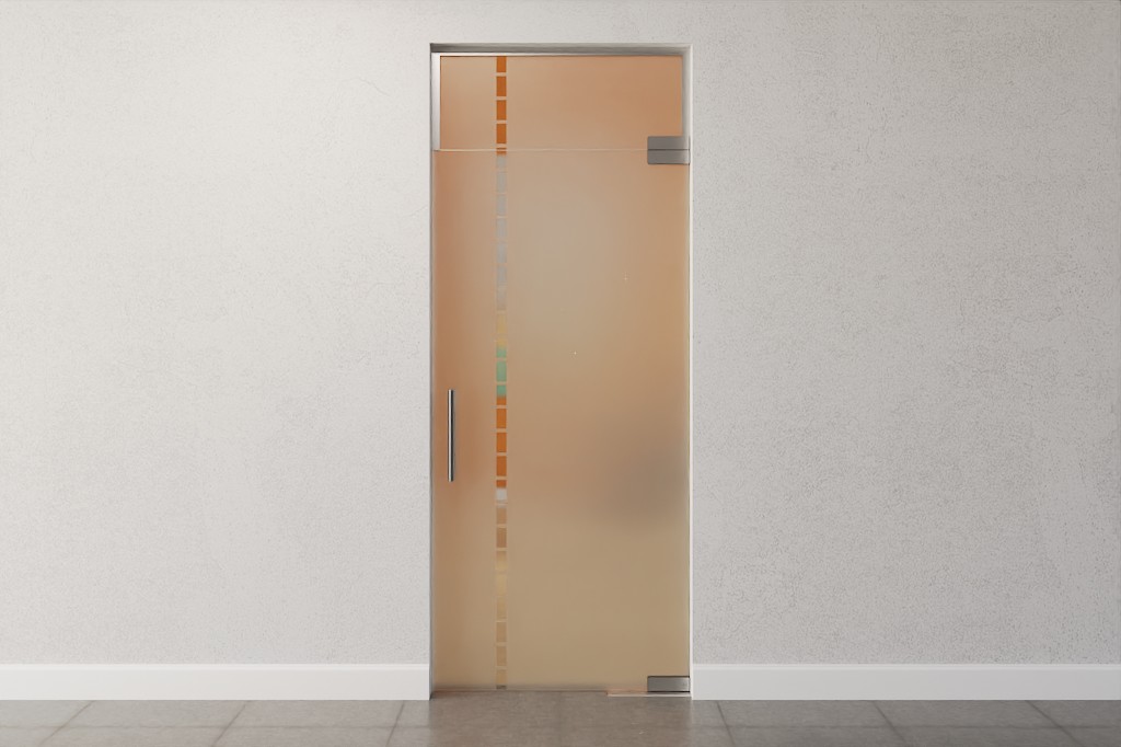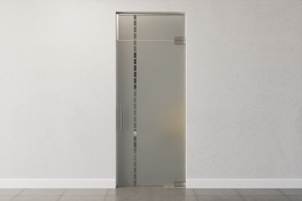 Ponadczasowa całoszklana konstrukcja z drzwiami wahadłowymi i świetlikiem, wykonana z wytrzymałego szkła bezpieczeństwa: