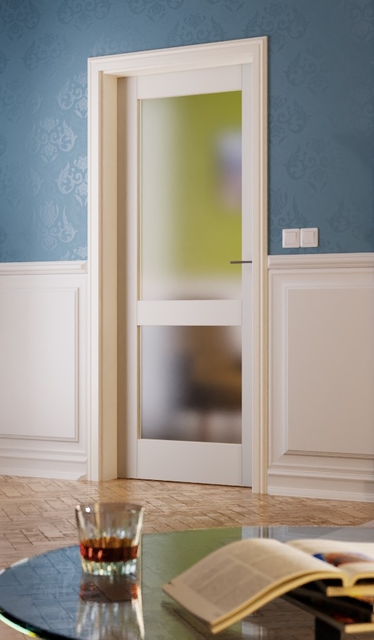 Osadzony w stabilnej konstrukcji z litego drewna, Altera 8902-LA wyraźnie akcentuje Twoją nieruchomość. Duża powierzchnia szklana jest przerywana przez środkowy fryz. Wyraźne kontury podkreślają ponadczasowy wygląd drzwi wewnętrznych. W standardowej wersji z przezroczystym szkłem, dostępne są również szkło matowe i Mastercarreé w białym kolorze za dodatkową opłatą.