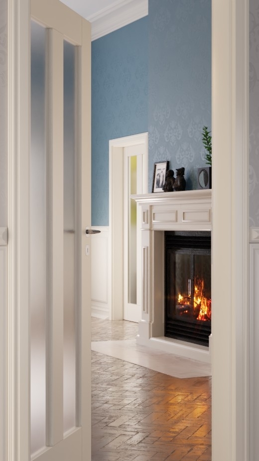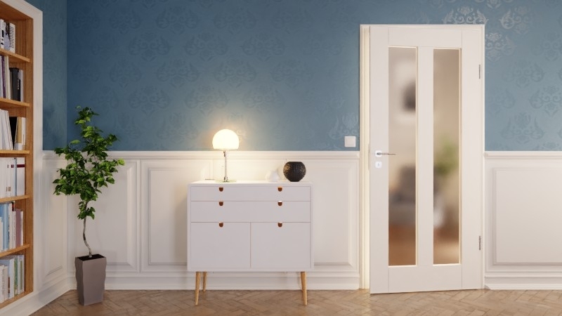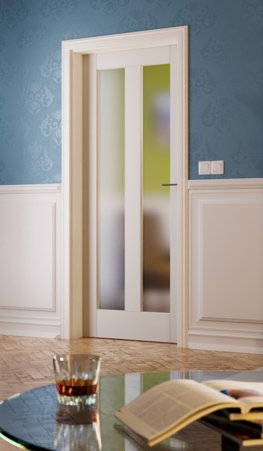 Wykonane w stabilnej konstrukcji ramowej z litego drewna, wypełnienia ze szkła są mocno osadzone. Świadome zrezygnowanie z listew szklanych nadaje mu wyjątkowy wygląd. Za dodatkową opłatą można wybrać dwa inne rodzaje szkła. Zaokrąglone krawędzie wzbogacają ogólny design drzwi wewnętrznych. Skrzydło drzwi jest po prostu pomalowane na biało i spełnia wszystkie niemieckie i europejskie normy w zakresie wykonania.