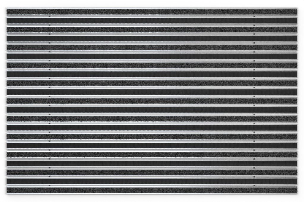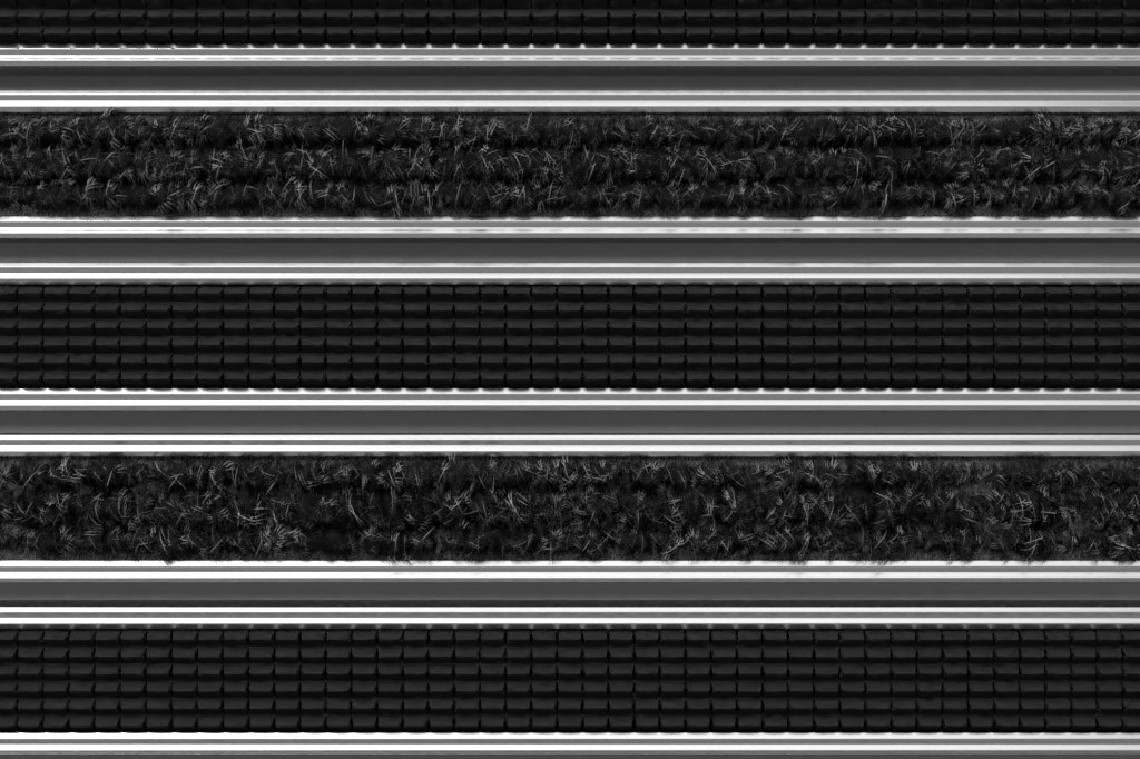 Obok czarnych pasków gumowych leżą paski ripsowe w kolorze czarnym. Dwa materiały tworzą z wycieraczek wejściowych sprytne połączenie. Paski gumowe pochłaniają wilgoć, podczas gdy paski ripsowe zajmują się grubym, drobnym brudem i wilgocią. Żłobione antypoślizgowe profile na częściach gumowych zapewniają wystarczającą przyczepność.