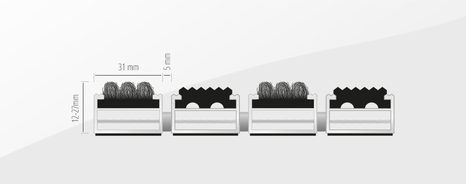 Bezproblemowy materiał wspierany jest przez aluminiowe nośniki. Profile sprawiają, że paski są sztywne skrętnie i przygotowane na duże obciążenia.