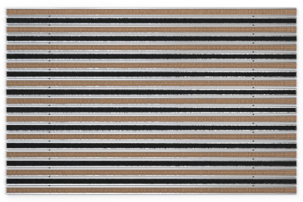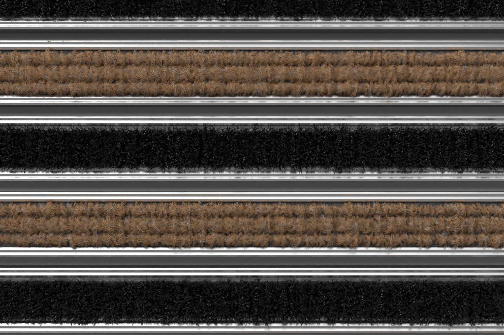 Wkładki z kokosowego włókna przeplatają się z gęstymi, czarnymi paskami szczotkowymi.