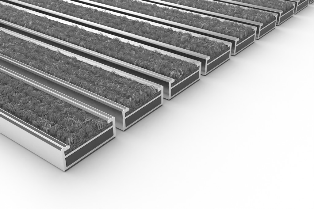 Wąskie paski z wytrzymałego polipropylenu w kolorze szarym zapewniają wchłanianie wilgoci dla suchych podeszw. Sztywne profile sprawiają, że zwijana mata jest niezawodnym przedmiotem codziennego użytku. Dodatkowa izolacja akustyczna dopełnia doskonały produkt.