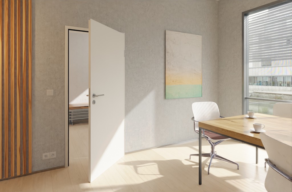 Elastyczność montażu zapewnia dwuwarstwowa budowa i regulacja szerokości szczęk. Montaż można przeprowadzić również po remoncie pomieszczeń. Odporność na wilgoć i wilgotne pomieszczenia gwarantuje odporne na korozję aluminium, z którego wykonana jest ościeżnica.
