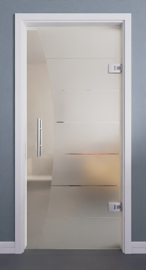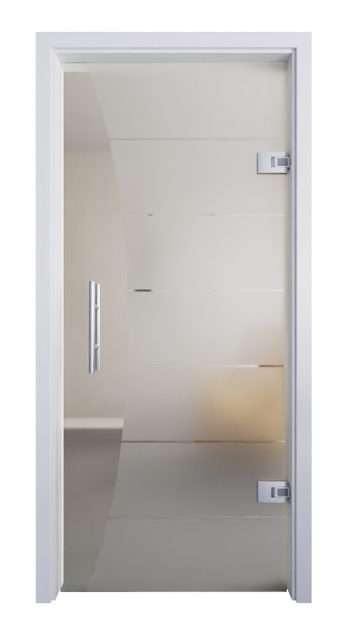 Szklane drzwi o symetrycznych kształtachsprawiają wrażenie harmonijnych i spokojnych. Półokrągłe przezroczyste przeszklenie umożliwia swobodny wgląd do sąsiedniego pomieszczenia. Równoległe linie przypominają stylowe listwy.