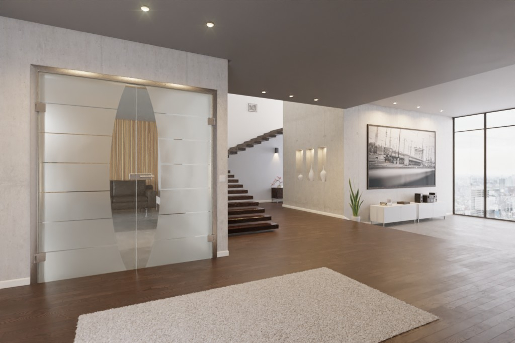 Piękne mieszkanie z tym podwójnym skrzydłem drzwiowym ze szkła: