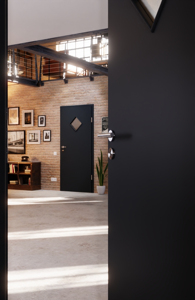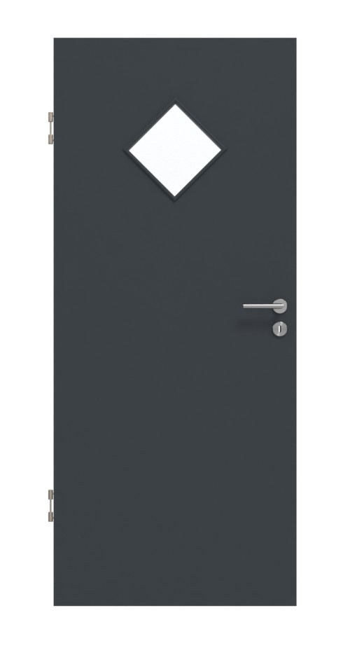 Zapewnia przytulny charakter: Drzwi wewnętrzne ProLine LA 6 w kształcie rombu w kolorze antracytowym RAL 7016 od Hörmann upiększają Twój dom, jednocześnie zachwycając funkcjonalnością.