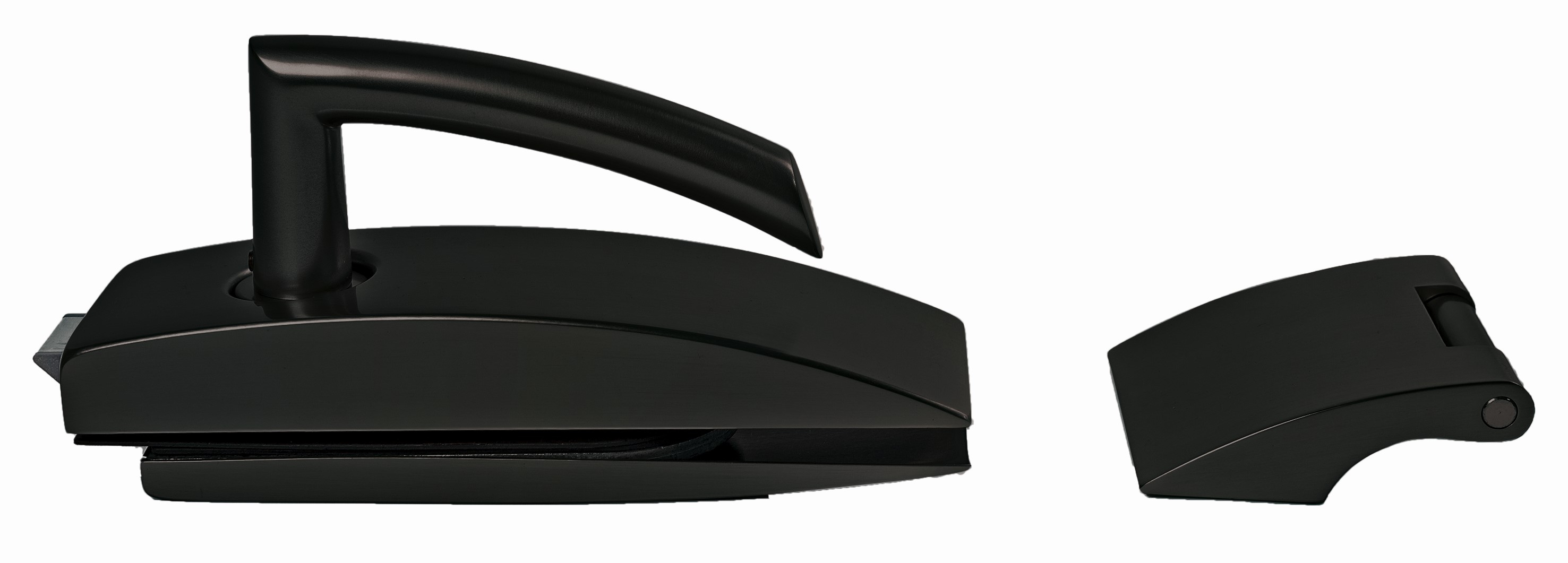 Wąski, prostokątny zamek zapewnia proste i klarowne wzornictwo, które doskonale uzupełnia wygląd modelu drzwi. Czarna kolorystyka idealnie pasuje do ciemnego skrzydła drzwi.