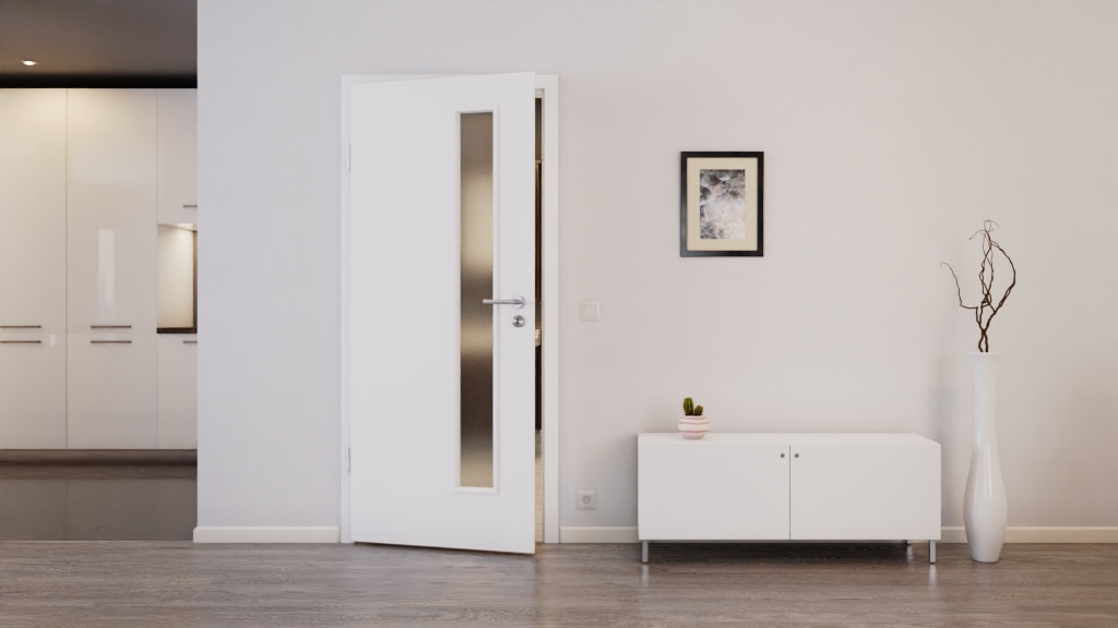 Położenie otworu szklonego po stronie zamka oraz jego wysokość umożliwiają widok na nadchodzące osoby. To przydatna funkcja w bardzo ruchliwych środowiskach, takich jak biura czy kuchnie. Mieszkaniec ma również więcej światła przy klamce i zamku.