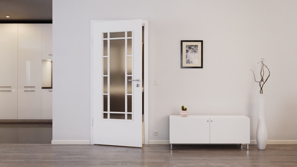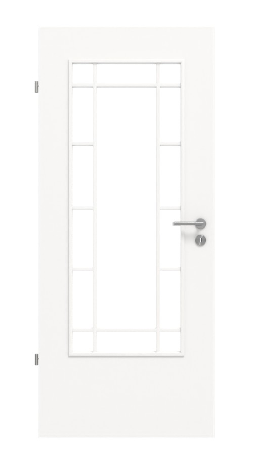Prostokątowe okno świetlne z nałożonymi listwami szklanymi wprowadza nowoczesny klimat. Dzięki przesuniętej ku górze obróbce szkło jest chronione przed uszkodzeniami, co czyni je idealnym do wynajmowanych obiektów. Stylowy design uzyskuje dzięki nałożonym szprosów. Wydanie szklane umożliwia dzięki układowi szprosów stworzenie ramy: małe kwadraty i prostokąty różnicują dużą otwartą przestrzeń pośrodku. Od przezroczystego szkła po satynowe, każdy znajdzie odpowiednie szkło dla siebie. Listwa, szprosy i drzwi mają ten sam kolor.