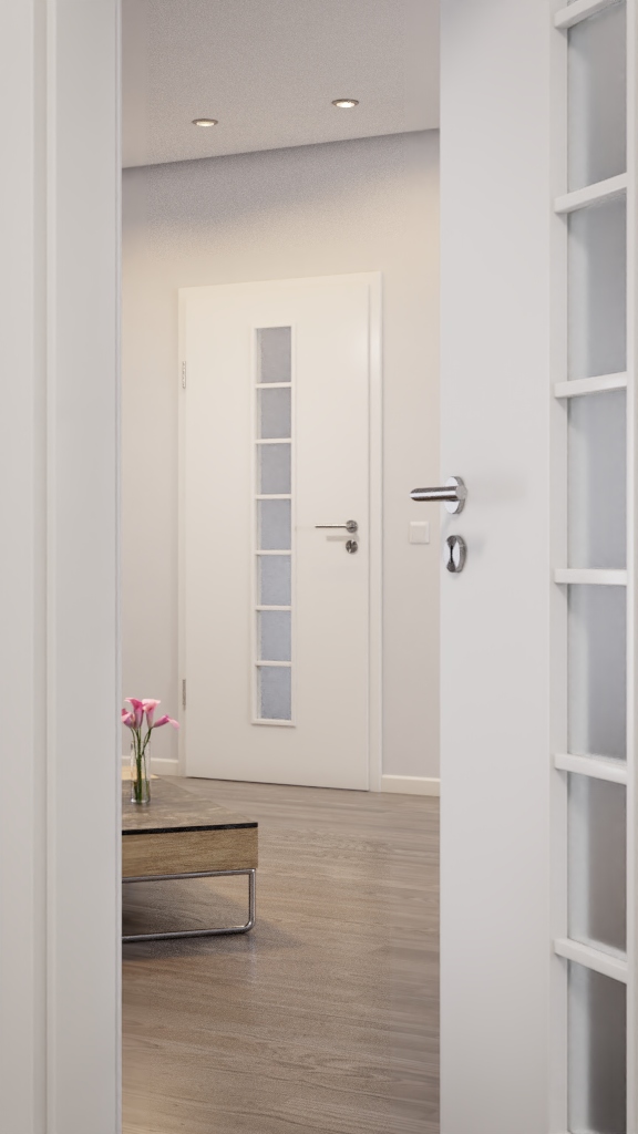 Elegancki design w doskonałej formie: WestaLack drzwi wewnętrzne w RAL 9016 łączą szkło z designowym przeszkleniem i lakierowaniem o matowym połysku.