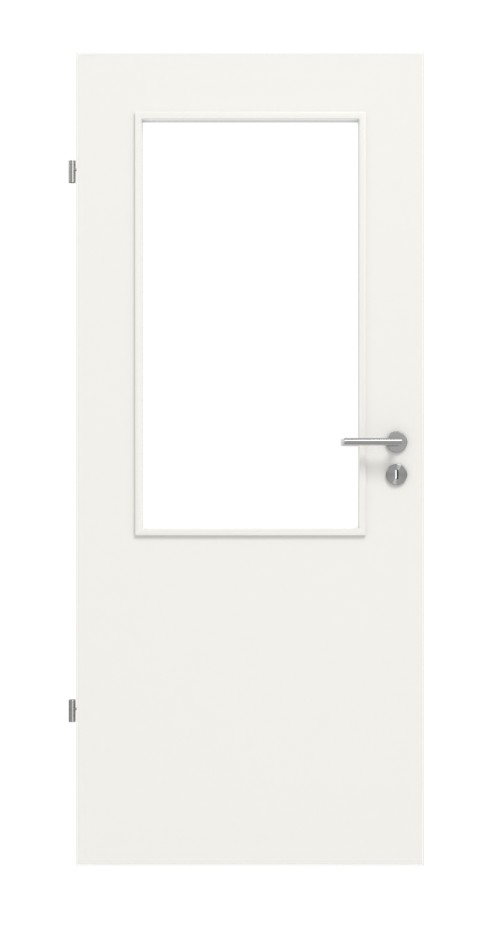 Przeszklenie optycznie dzieli drzwi na dwie części. Dzięki temu daje częściowy wgląd do Twojego wnętrza, a dolna część jest chroniona przed stłuczeniem szkła. Ten model drzwi dostarczany jest bez szklenia. Pożądany wkład szklany jest dostępny za dodatkową opłatą.