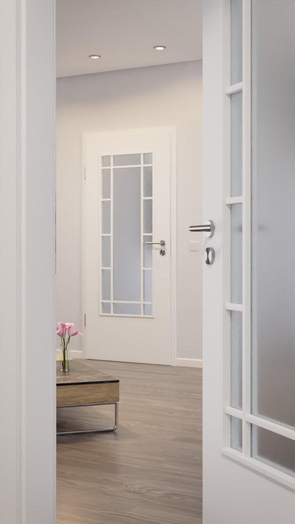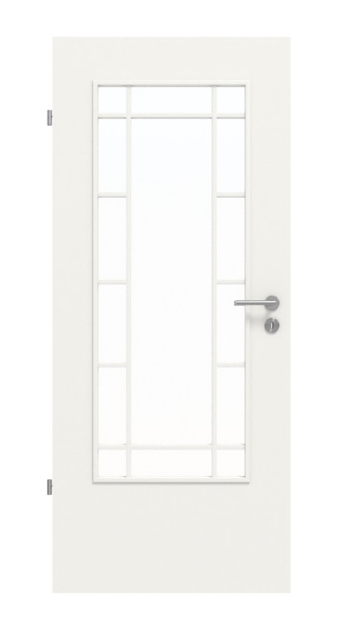 Dzięki białemu lakierowi drzwi wewnętrzne są uniwersalne i pasują do niemal każdej aranżacji wnętrza. Wygląd przeszklenia stanowi szczególny akcent.