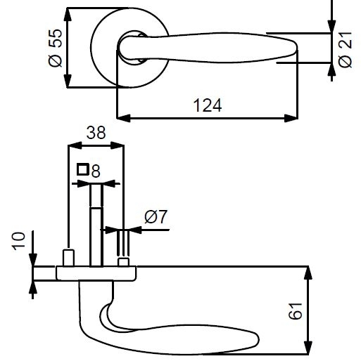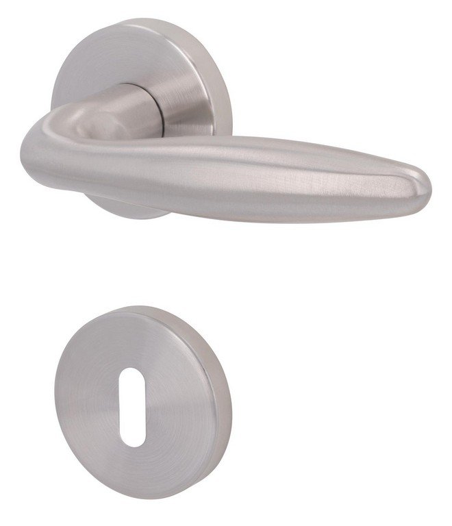 Matowy stal nierdzewna jest odporna na korozję i łatwa w pielęgnacji. Jego kształt cygara harmonijnie współgra z okrągłością rozet. Sprężyna podtrzymująca zapewnia optymalną pozycję klamki.