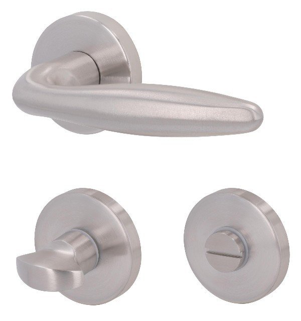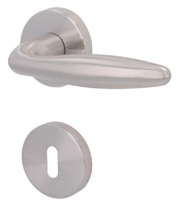 Okrągłe rozety i uchwyt wykonane są z wysokiej jakości stali nierdzewnej, co czyni je łatwymi w pielęgnacji i odpornymi na korozję. Dzięki kształtowi cygara klamka dobrze leży w dłoni. Wyposażona jest w zintegrowaną sprężynę podtrzymującą, która zapewnia jej poziome ustawienie.
