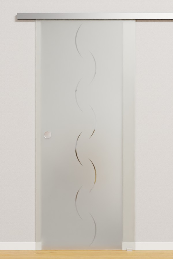 Sierpowate, pionowe linie nadają drzwiom przesuwnym figlarny charakter, a dzięki zastosowaniu szkła przezroczystego zapewniają przyjazną atmosferę w pomieszczeniu. Satynowane skrzydło drzwiowe zapewnia ochronę przed wzrokiem ciekawskich, ale jednocześnie przepuszcza światło do pomieszczenia, tworząc przytulną atmosferę.