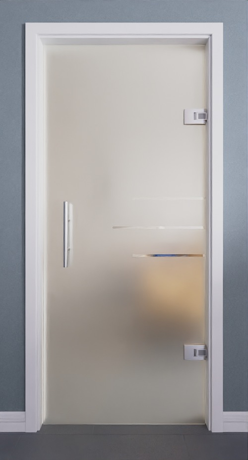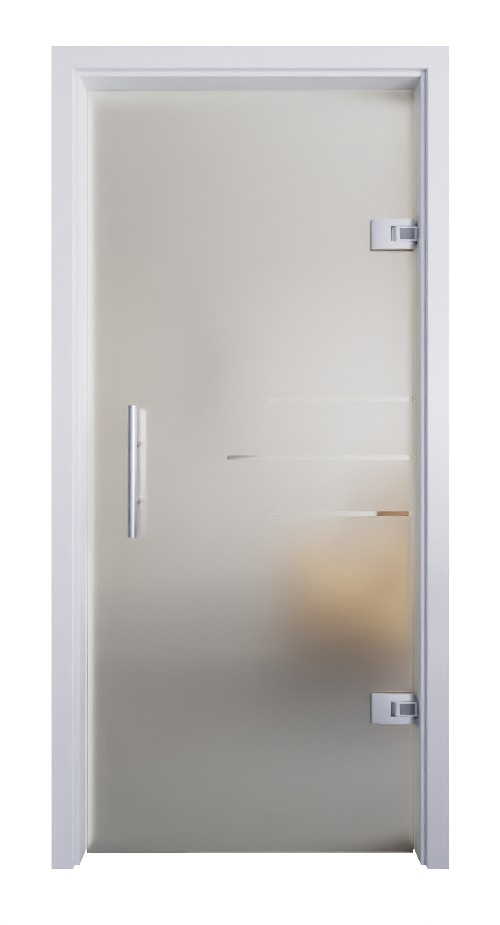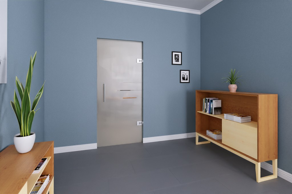 Drzwi wahadłowe szklane przekonują swoim gustownym designem. Trzy linie biegnące pośrodku matowego skrzydła drzwiowego nadają mu stylowy wygląd. Dzięki subtelnemu designowi drzwi całoszklane pasują do każdego mieszkania.