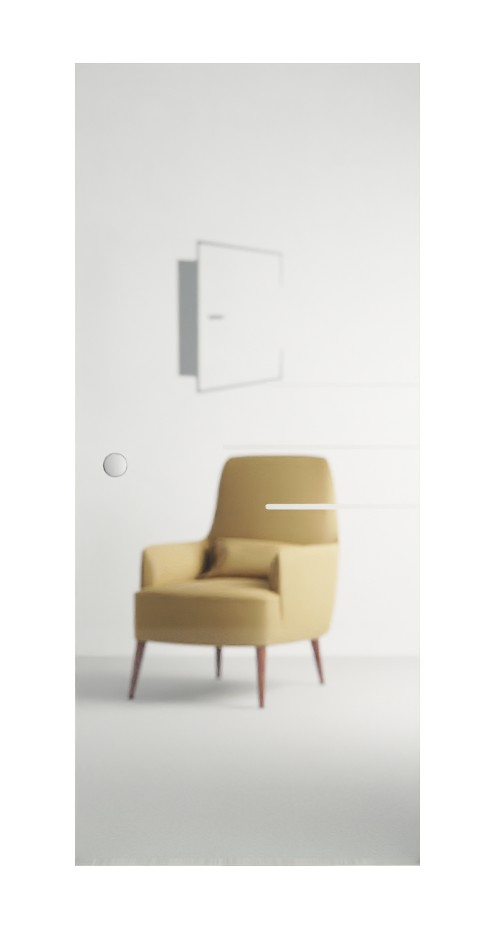 Drzwi przesuwne mają elegancki, purystyczny wygląd. Przezroczyste skrzydło drzwiowe zachwyca drobnym motywem trzech matowych linii poprzecznych umieszczonych pośrodku po stronie zawiasowej. Dzięki przezroczystym skrzydłom drzwiowym pomieszczenie jest pełne światła. Drzwi te idealnie pasują zatem idealnie do koncepcji otwartego mieszkania.