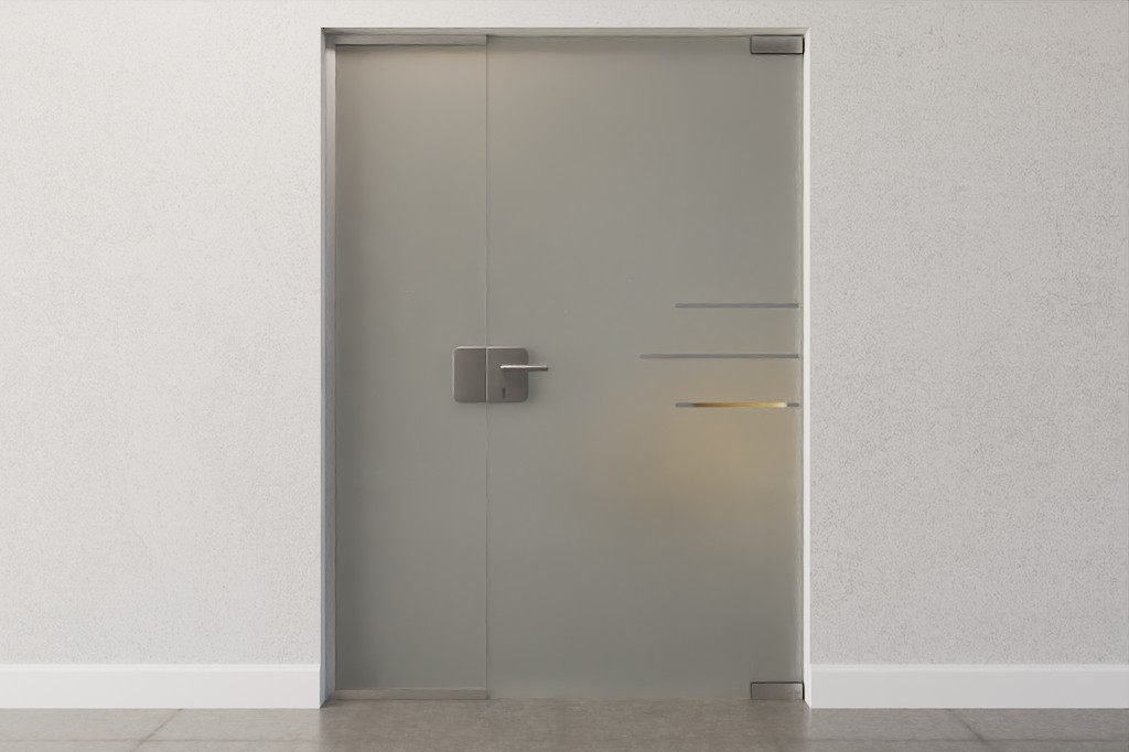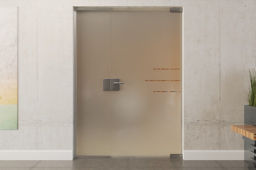 Trendy, całoszklane drzwi z boczną częścią z szkła bezpieczeństwa odpornego na brud:
