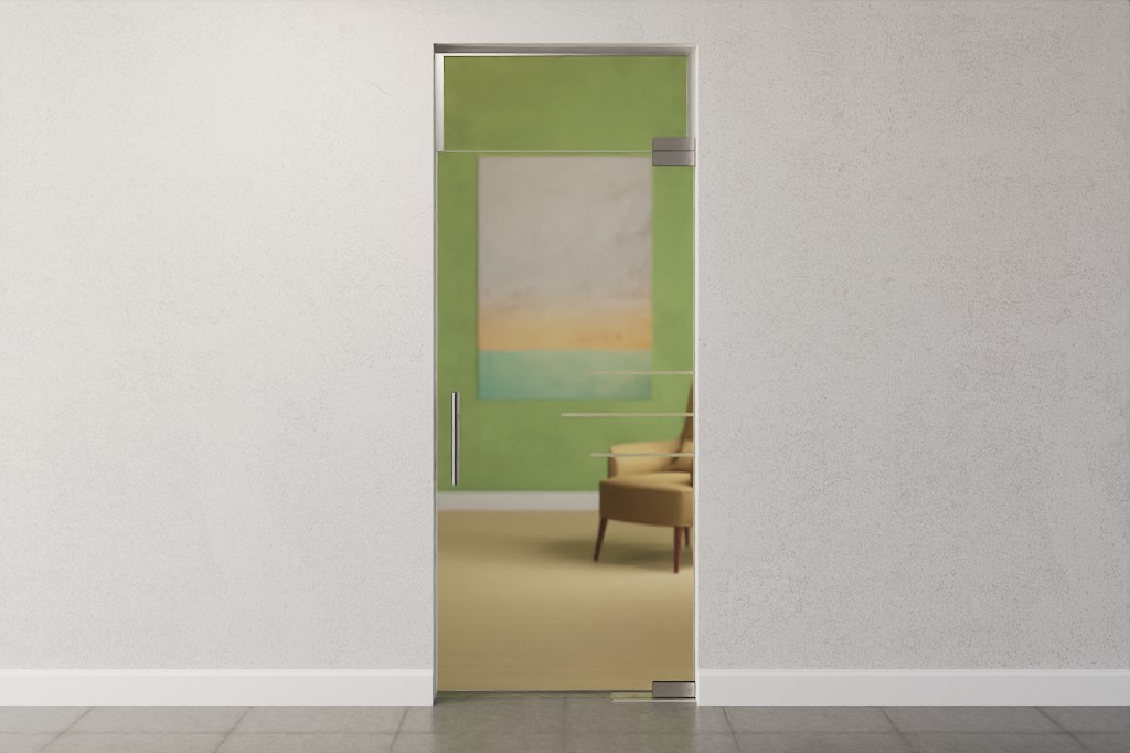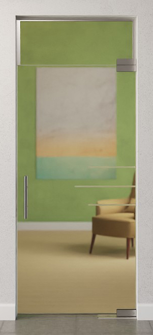 Dekoracyjna całoszklana konstrukcja z drzwiami wahadłowymi i świetlikiem z wytrzymałego i specjalnie pokrytego szkła bezpieczeństwa: