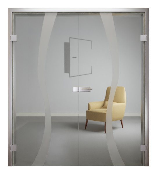 Falista linia ze szkła satynowego to cecha charakterystyczna przezroczystych drzwi przeszklonych. Zakrzywiona linia przebiega pionowo przez środek powierzchni i ma różną szerokość po obu końcach skrzydła drzwiowego. Nadaje modelowi nowoczesny wygląd, a także dzieli skrzydło bierne i czynne na sekcje o różnym stopniem przejrzystości. W ten sposób powstaje element przyciągający wzrok, który jednocześnie zapewnia przyjemne oświetlenie pomieszczenia. Polerowane wykonanie krawędzi elegancko podkreśla nowoczesny, ponadczasowy styl tego modelu.
