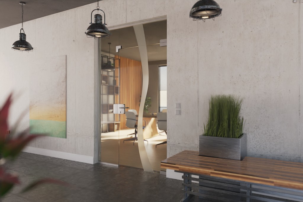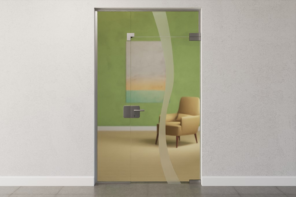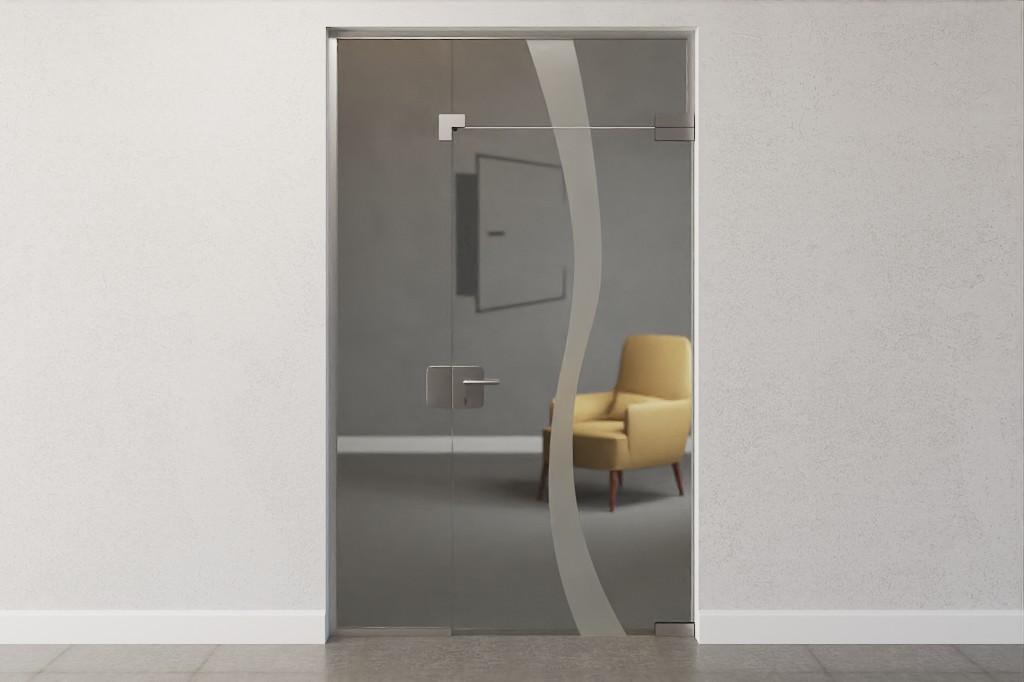 Drzwi szklane najwyższej jakości z bocznym panelem i świetlikiem z specjalnie pokrytego szkła hartowanego: