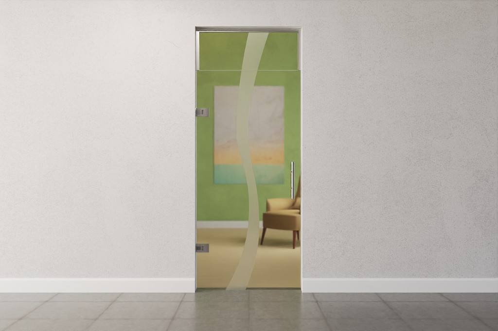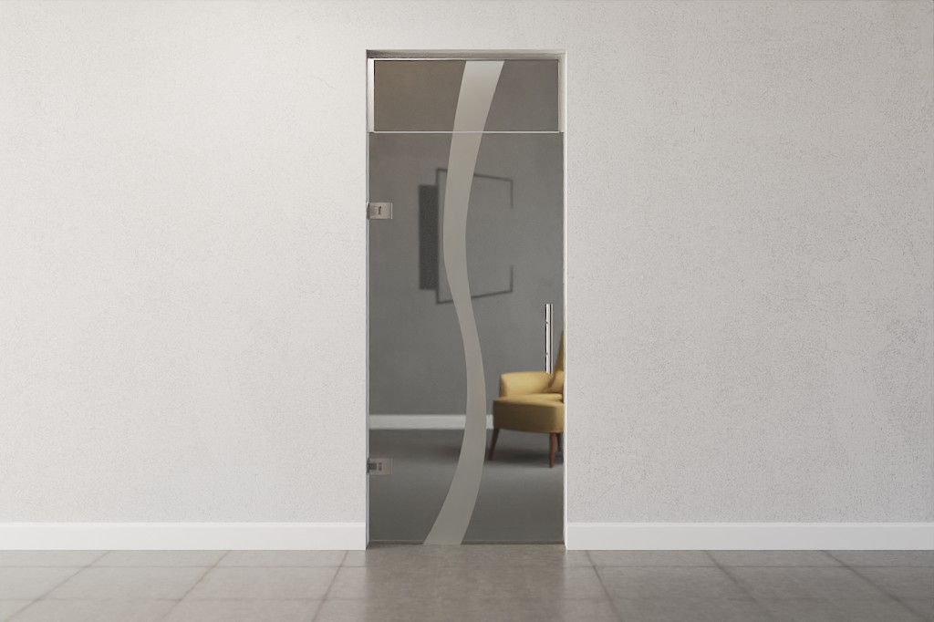 Stylowe drzwi przeszklone z górnym oświetleniem w jakości markowej, w tym najlepsze zawiasy szklano-ścienne DORMA Tensor: