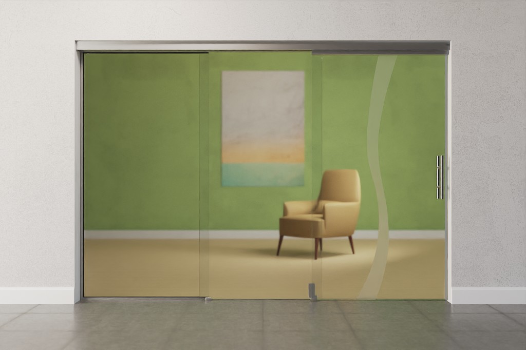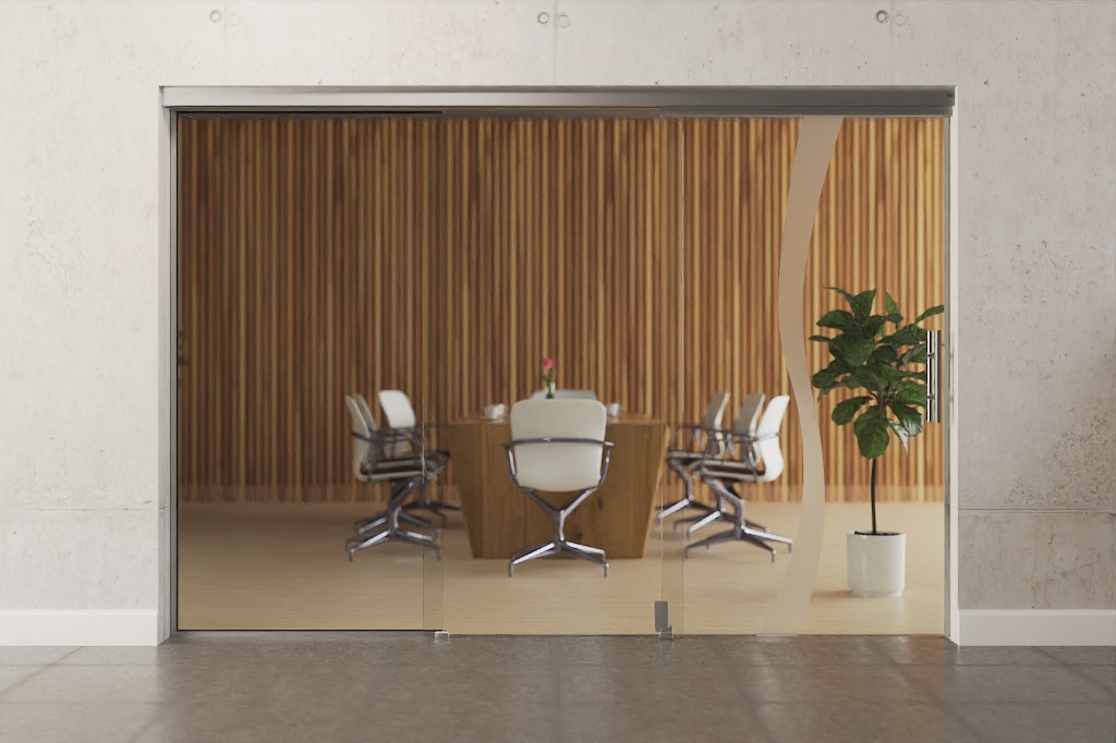 Zakrzywiona linia pośrodku skrzydła drzwiowego delikatnie naśladuje ruch fali. Duże powierzchnie przezroczystego szkła wpuszczają światło i zapewniają widok do wnętrza pomieszczenia.