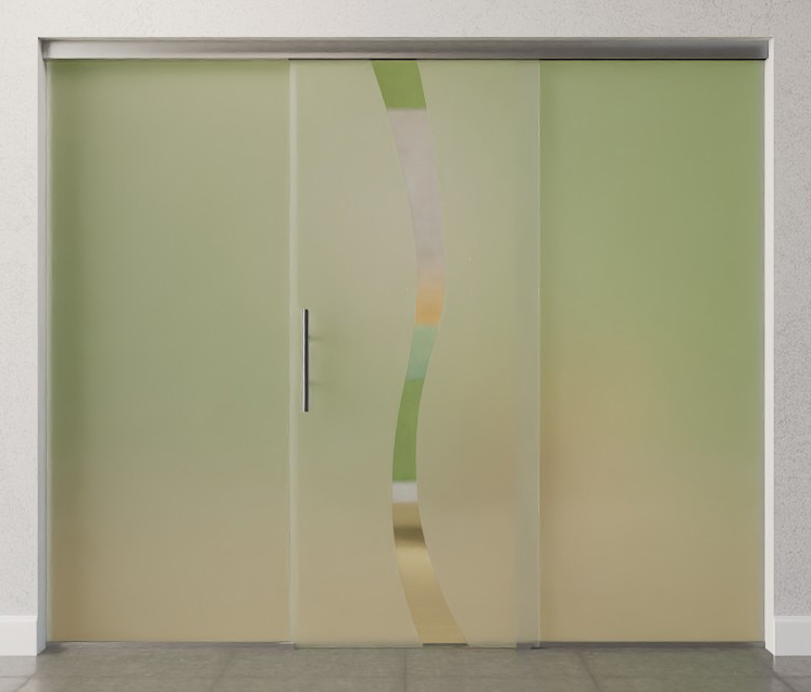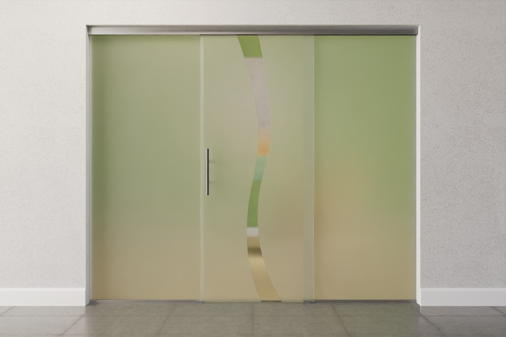 Delikatny motyw fal w przezroczystym szkle stanowi centralny element pięknego projektu Bergamo. Zakrzywiona taśma biegnie pionowo po matowej powierzchni szkła.