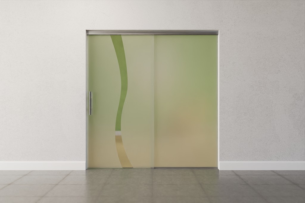 Pionowy wzór fal biegnie tutaj pośrodku matowego szkła. Ten przezroczysty wzór nadaje wnętrzu atrakcyjny dynamiczny charakter i pasuje do każdego stylu wystroju.