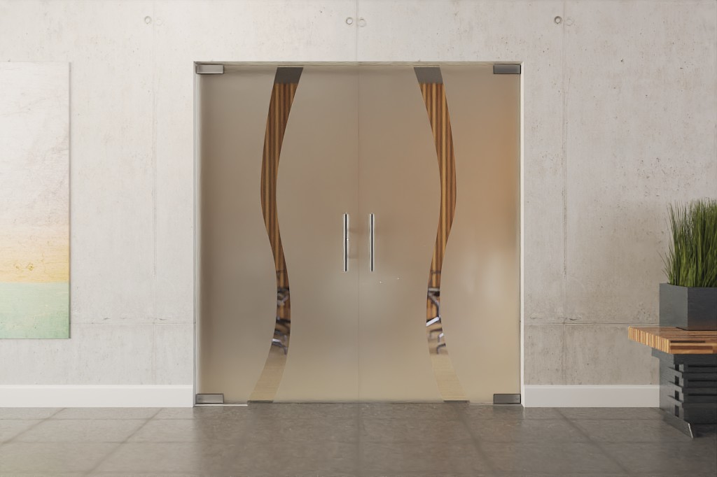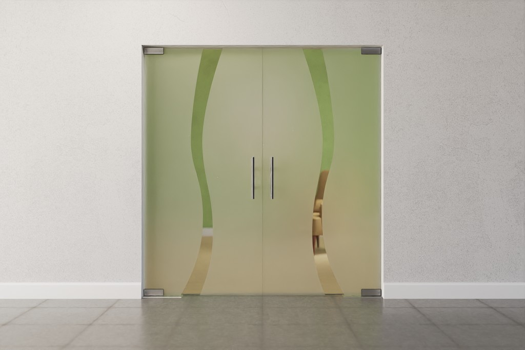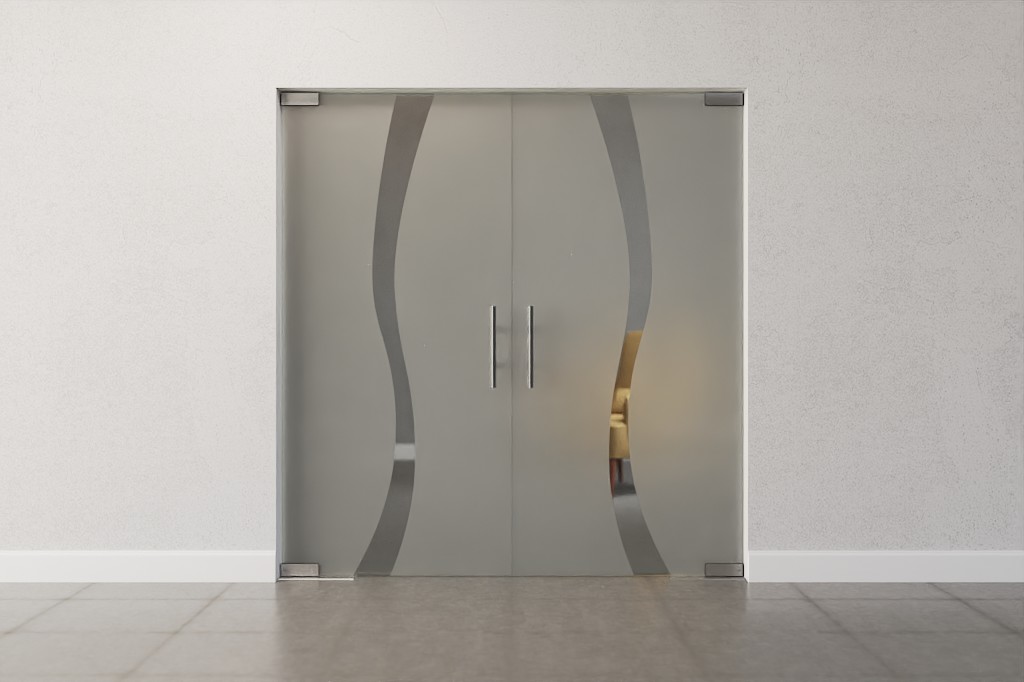 Stylowe podwójne drzwi wahadłowe z odpornym na brud szkłem hartowanym: