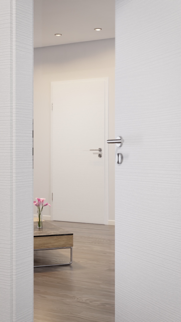 Elegancki design i praktyczność w codziennym użytkowaniu za niewielką cenę: Dzięki wytrzymałej warstwie wierzchniej, wybierając drzwi wewnętrzne 4.1 z powierzchnią CPL w kolorze białym ze strukturą firmy Classen, decydujesz się na trwałość.