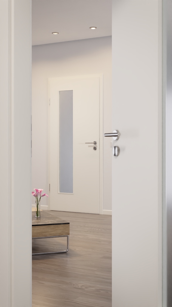 Silny partner dla Twojego wnętrza: Prosta drzwi wewnętrzne od Lebo w białym kolorze 9010 zachwycają designem i funkcjonalnością.