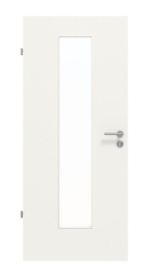 Proste wzornictwo dla modnego wnętrza: Dzięki gładkiemu skrzydłu drzwiowemu i prostemu kolorowi w bieli 9016 ta drzwi wewnętrzne od Lebo zachwycają nowoczesnym stylem. Całość dopełnia prostokątny przeszklenie. Stwórz przezroczyste przejścia między swoimi pomieszczeniami!