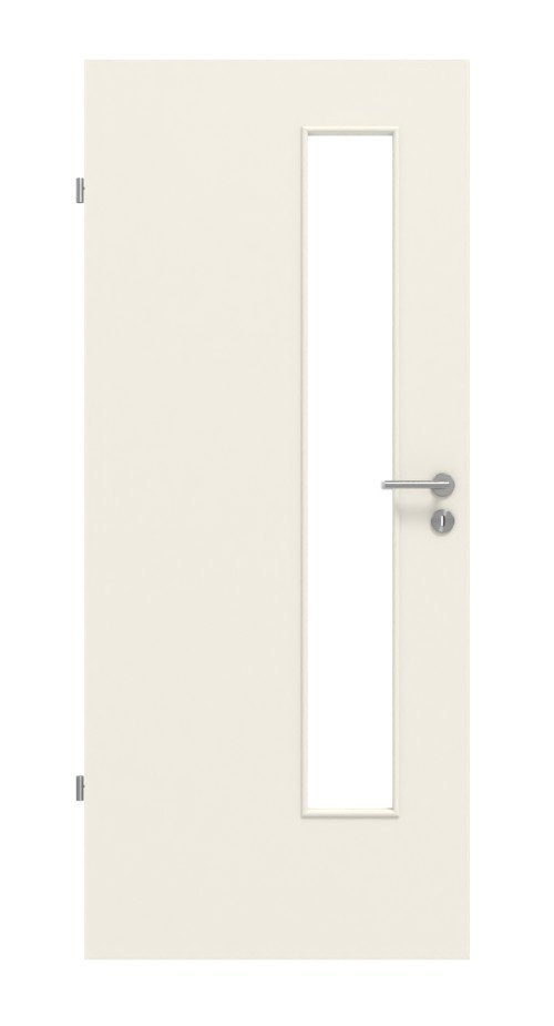 Długi, wąski wycięty fragment po stronie zamka na skrzydle drzwiowym wpuszcza nieco światła do pomieszczenia. Ponadto stanowi on atrakcyjny element przyciągający wzrok, który odświeża i ożywia ogólny wygląd.