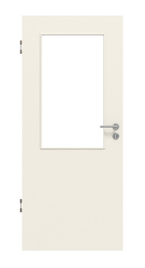 W górnej części skrzydła drzwiowego znajduje się szeroki wycięty fragment szklany . Wpuszcza on do pomieszczenia dużo światła, tworząc w ten sposób pozytywną atmosferę.