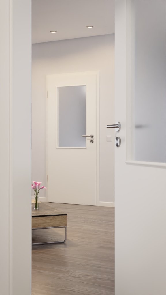 Aby stworzyć przytulną atmosferę: Drzwi wewnętrzne ProLine LA 7 w kolorze bieli czystej RAL 9010 firmy Hörmann upiększą Twój dom, a jednocześnie przekonują swoją funkcjonalnością.