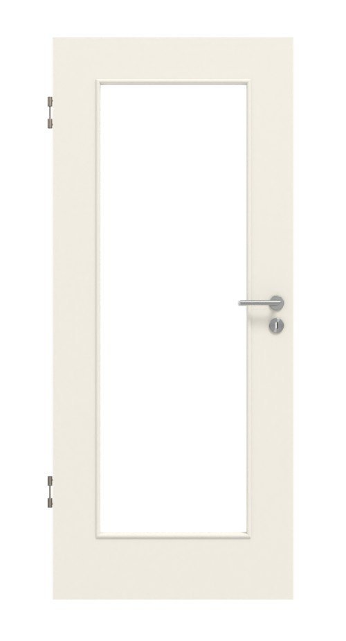 Wycięcie szklane rozciąga się niemal na całej powierzchni skrzydła drzwiowego. W ten sposób zapewnia ogromny dopływ światła i tworzy przestrzeń wypełnioną światłem.